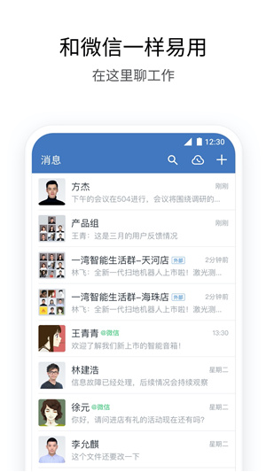 1、企业微信安卓旧版本与微信一致的沟通体验,简单易用
